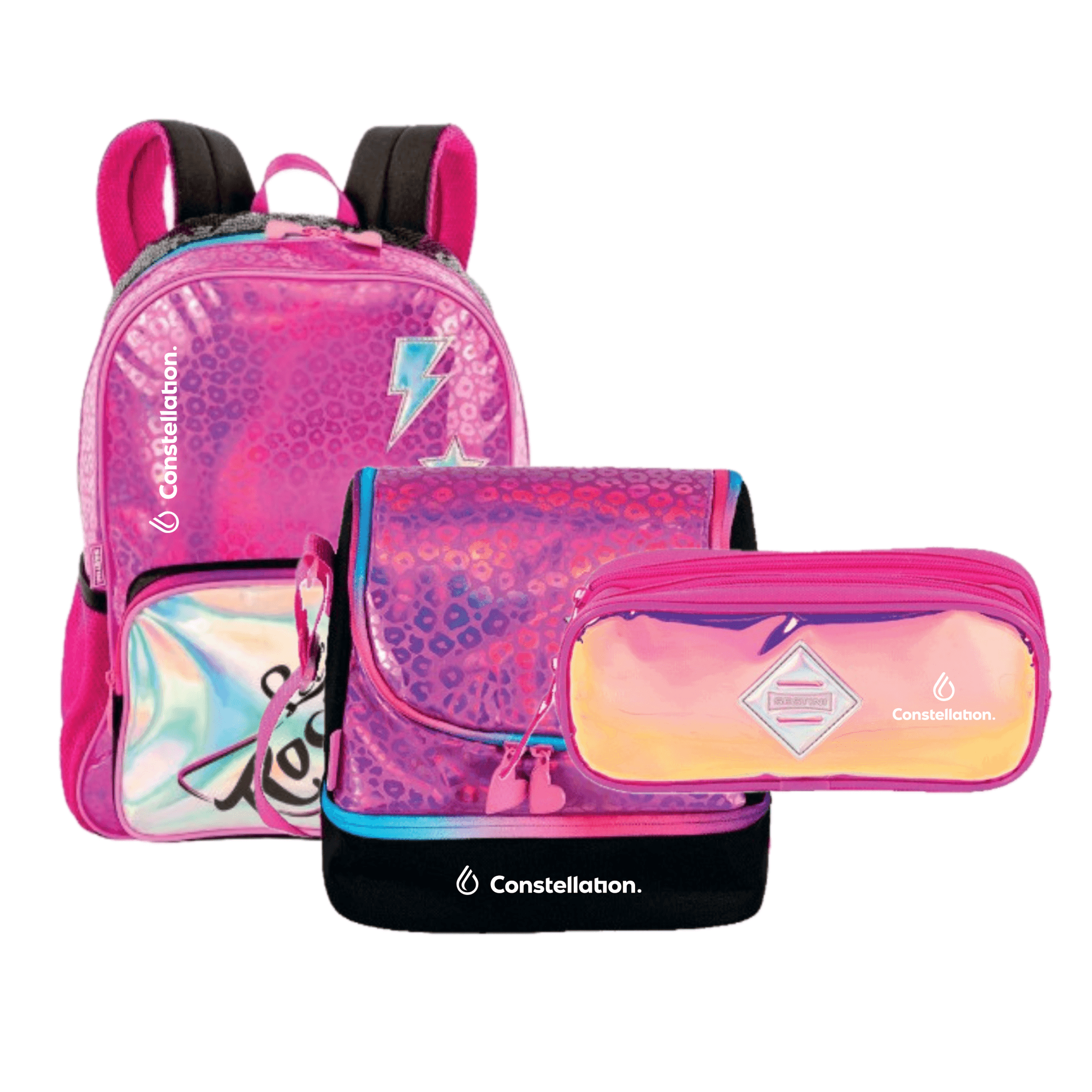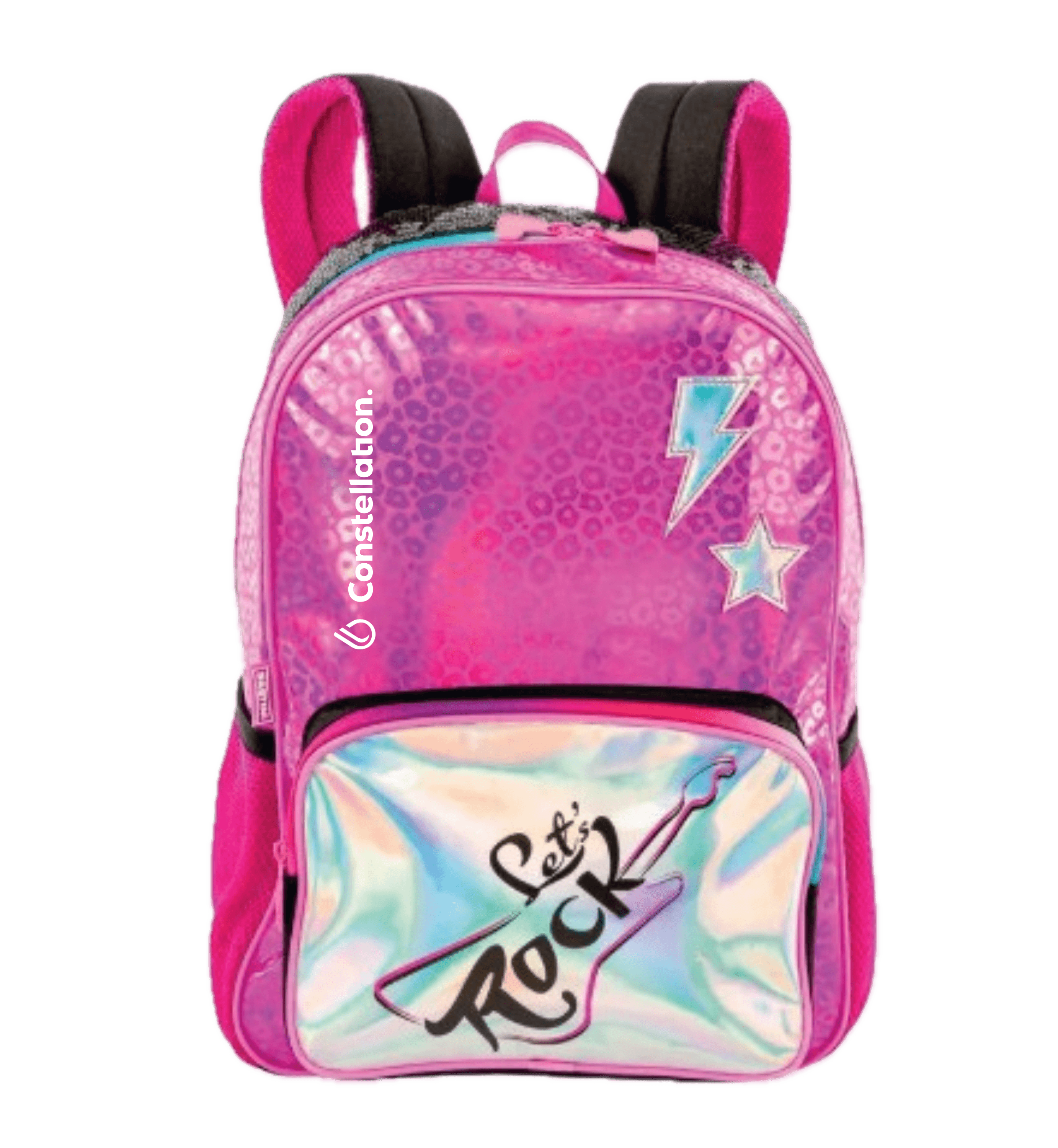 The Large Backpack Kit with Special Lunchbox and 2 Compartments Pencil Case Sestini X Rock - Colorful is the perfect set for young people with a rock'n'roll spirit. With a spacious backpack, ideal for carrying books, notebooks, and other school materials comfortably and stylishly, a special lunchbox to keep snacks fresh and tasty throughout the day, and a two-compartment pencil case to organize pencils, pens, and other essential items in an orderly manner, this kit offers practicality and functionality.