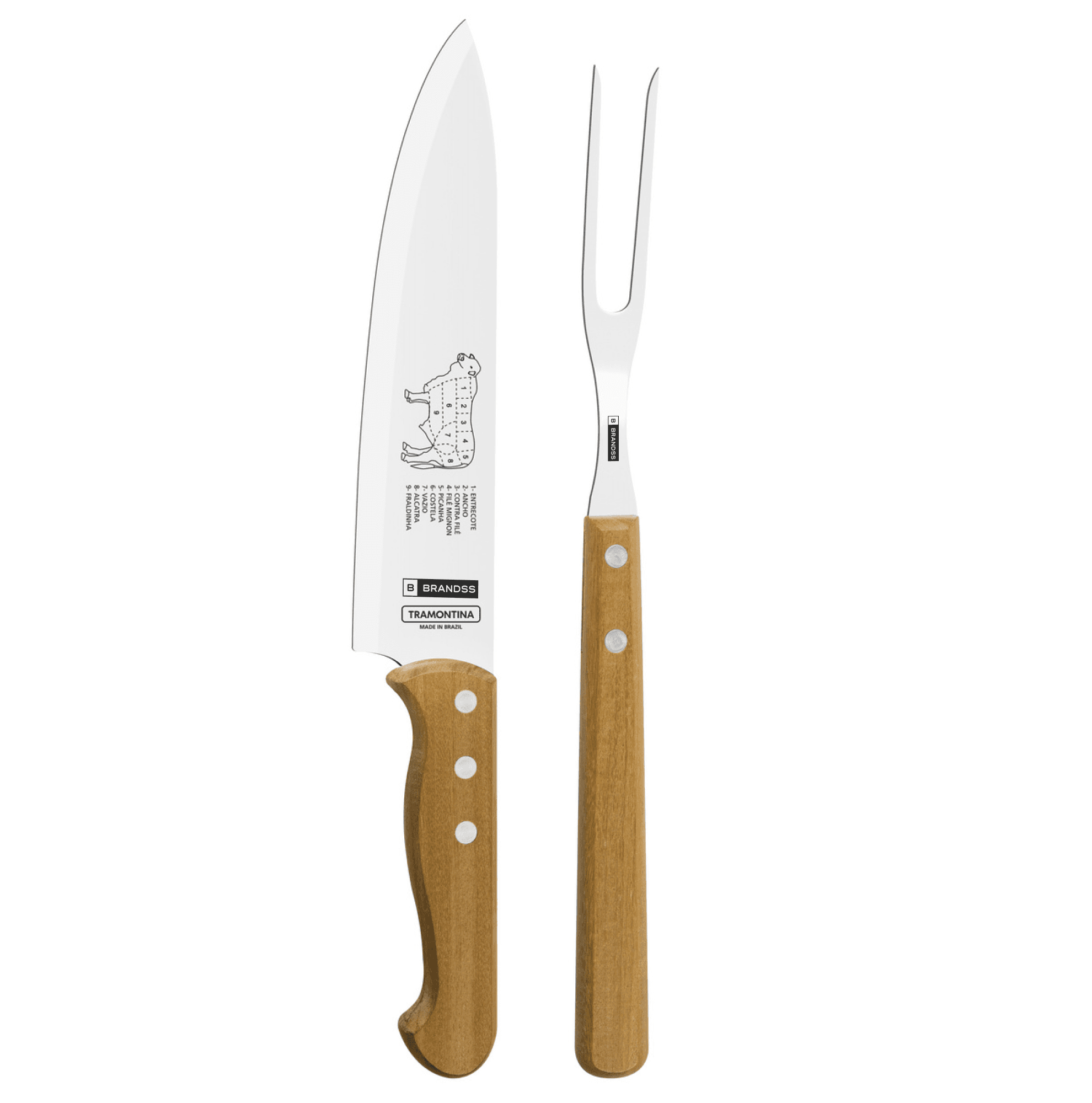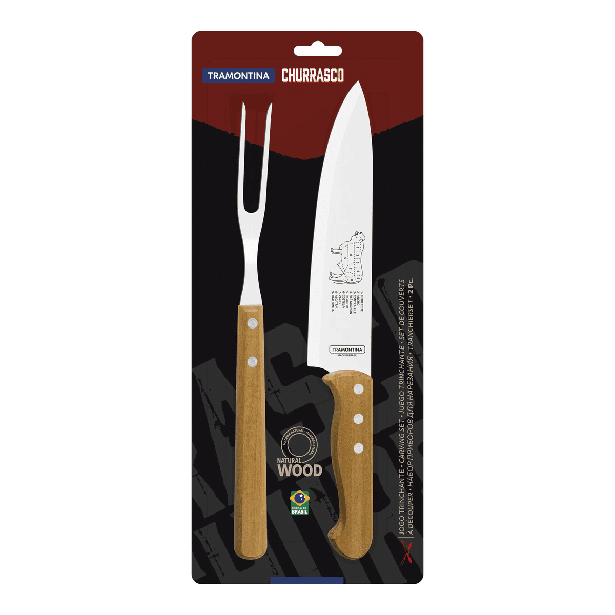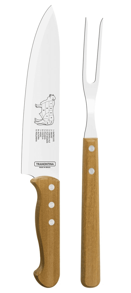 Jogo Trinchante Tramontina com cabos de Madeira Natural 2 peças