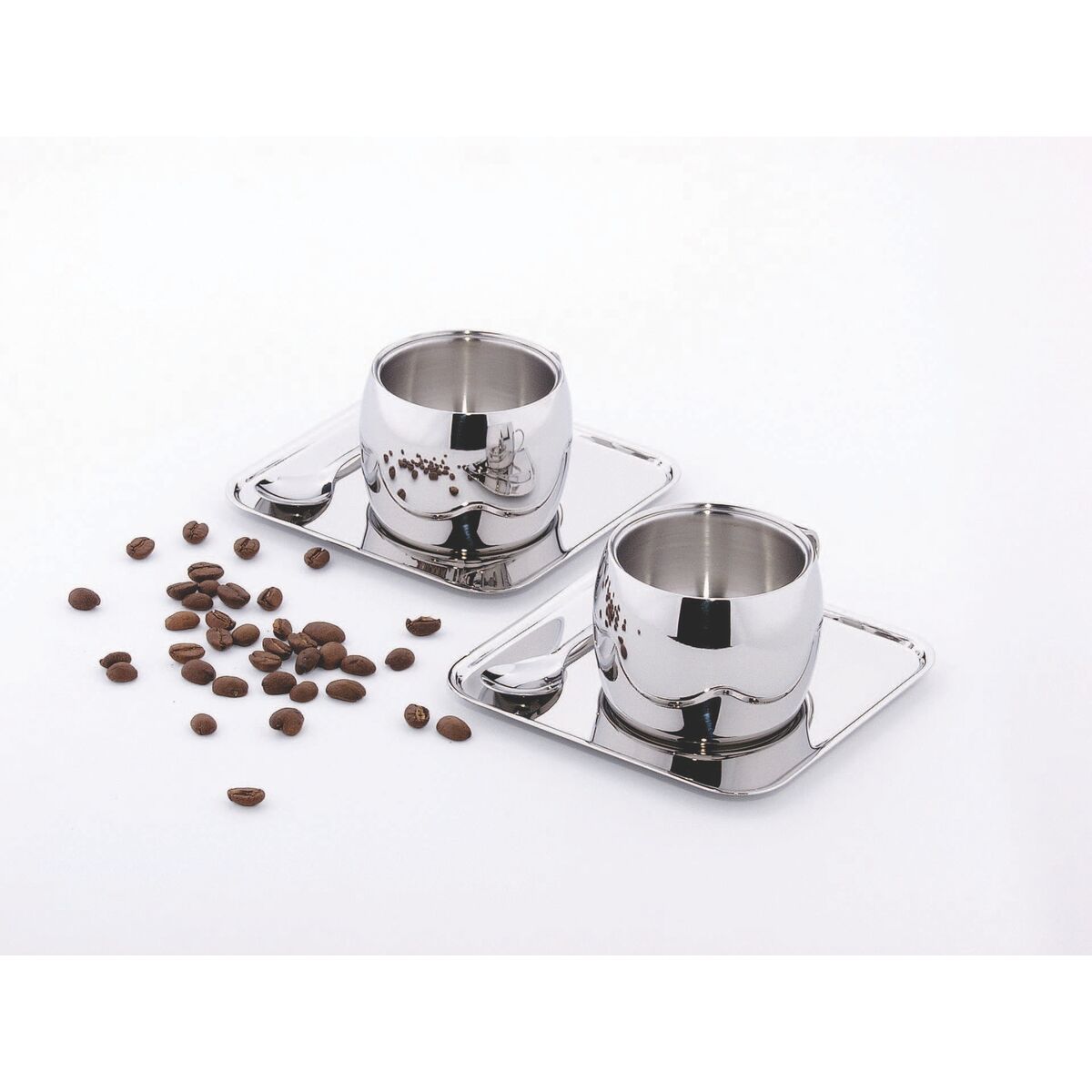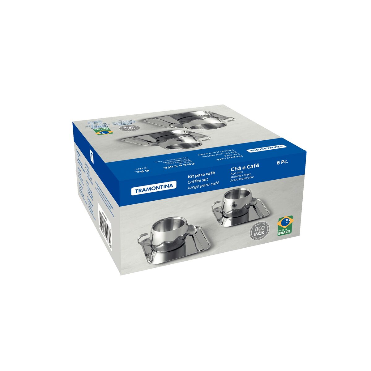 __descricao__ Com o Kit para Café Tramontina em Aço Inox Acabamento Brilho com Xícara Píres Quadrado e Colher 6 Peças da linha Chá e Café a sua reunião ou o seu momento em família fica ainda mais prazeroso e sofisticado. As peças são produzidas totalmente em aço inox, mantendo a bebida própria para consumo, pois não solta nenhum resíduo no líquido. Altamente duráveis, as xícaras e os pires contam com um acabamento em brilho, proporcionando ainda mais beleza e elegância à mesa. Para tornar esse momento saboroso mais seguro, as xícaras possuem paredes duplas, ou seja, o calor da bebida não passa para a parte externa.