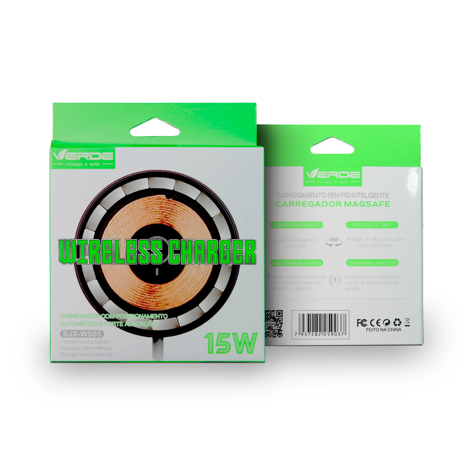 _descricao_ Descubra a combinação perfeita de design e desempenho com os carregadores da Verde, ideais para quem quer praticidade e estilo ao carregar seus dispositivos Apple. Diga adeus aos cabos e olá à conveniência e sofisticação que esses dois modelos proporcionam! Modelo SJX-WS-05 - Potência e Elegância (15W): Com um visual inovador que revela as bobinas de cobre, este carregador oferece até 15W de potência para um carregamento super rápido. Compatível com os iPhones 11, 12, 13, 14 e 15, o carregador é a escolha perfeita para quem busca alta performance com um toque de sofisticação. Seu design premium vai se destacar em qualquer ambiente, seja no escritório ou em casa. Modelo SJX-WS-06 - Compacto e Eficiente: Minimalista e funcional, este carregador é a solução ideal para o seu dia a dia. Compatível com iPhones 11, 12, 13 e 14, ele é compacto e discreto, perfeito para quem quer levar tecnologia de ponta para todos os lugares. Além de prático, seu design clean complementa qualquer estilo. Por que escolher esses carregadores? Carregamento sem fio rápido: Esqueça os cabos e mantenha seus dispositivos sempre prontos. Design sofisticado: Estilos modernos que elevam a estética do seu espaço. Compatibilidade ampla: Feitos para os principais modelos da Apple. Com os carregadores da Verde, você aproveita o melhor da tecnologia wireless, enquanto transforma sua rotina em algo mais prático e elegante.