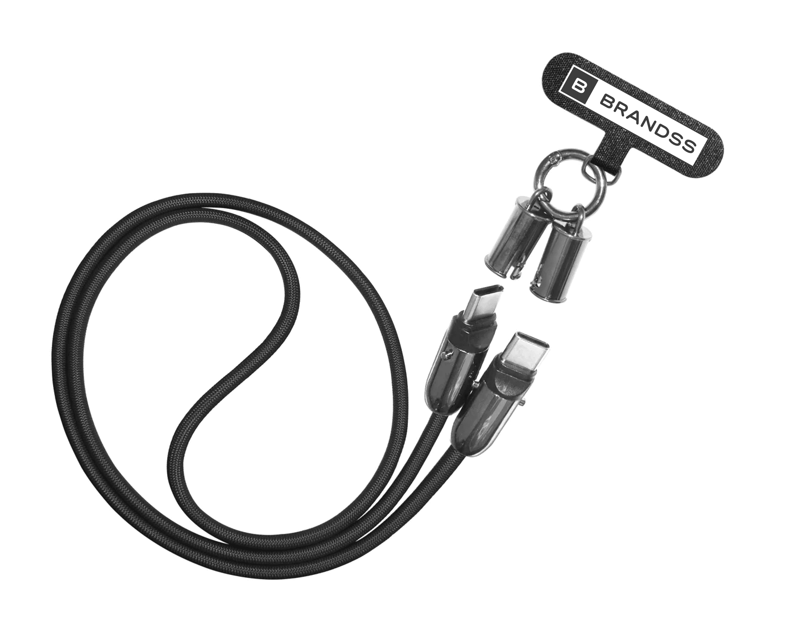 O grande diferencial do cabo está em seu design multifuncional. Ele é um cordão de poliéster premium, altamente resistente a torções, puxões e desgastes do uso diário, que permite que você transporte seu smartphone no pescoço ou no ombro de maneira confortável, ideal para quem precisa manter o aparelho sempre por perto, como em eventos, caminhadas ou situações em que as mãos precisam estar livres.