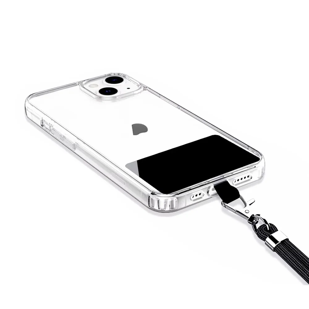O encaixe do cordão na capa é feito por meio de um cartão em Nylon + TPU, estrutura reforçada que sustenta o peso do aparelho com firmeza sem deformar com o tempo. Além disso, o design inteligente desse suporte garante total acesso à entrada do carregador, permitindo recarregar o celular sem precisar remover o acessório.