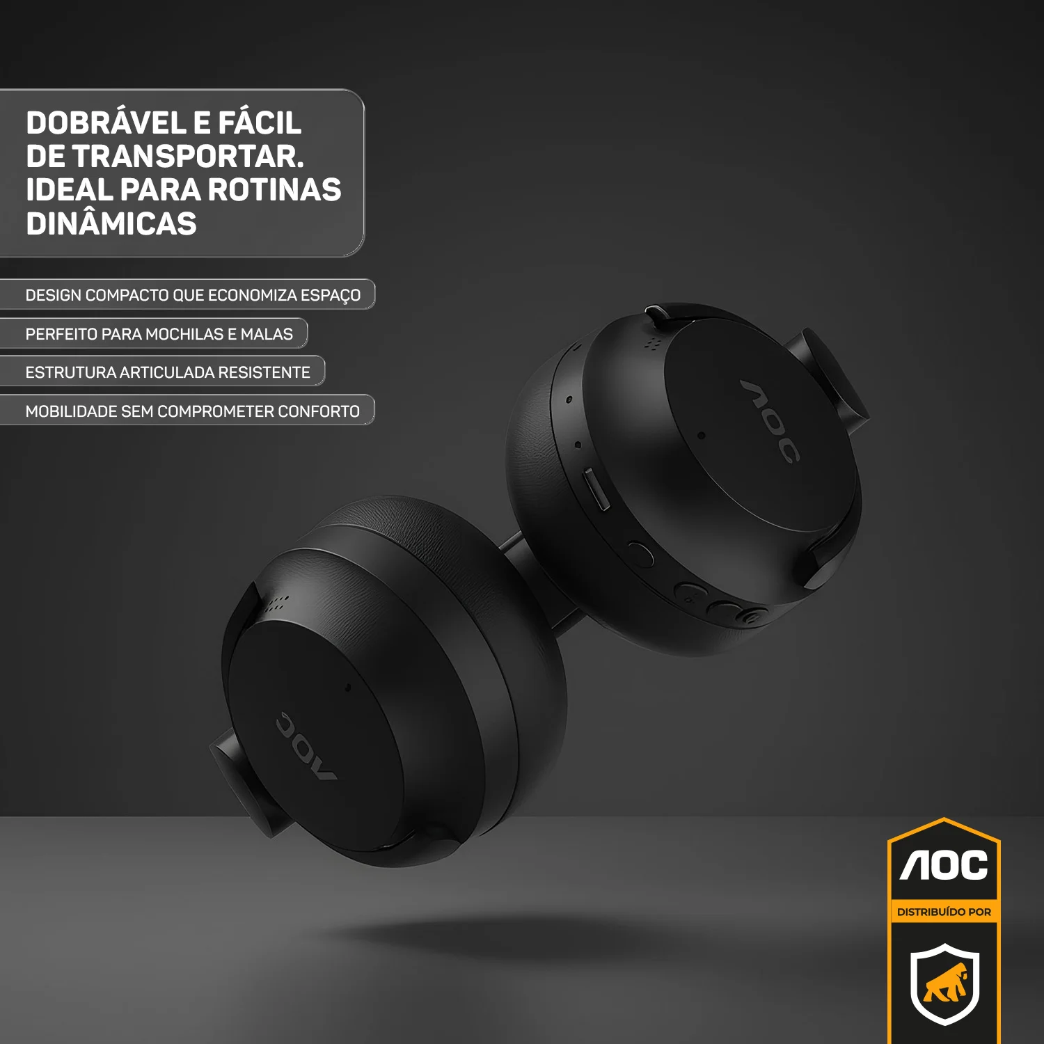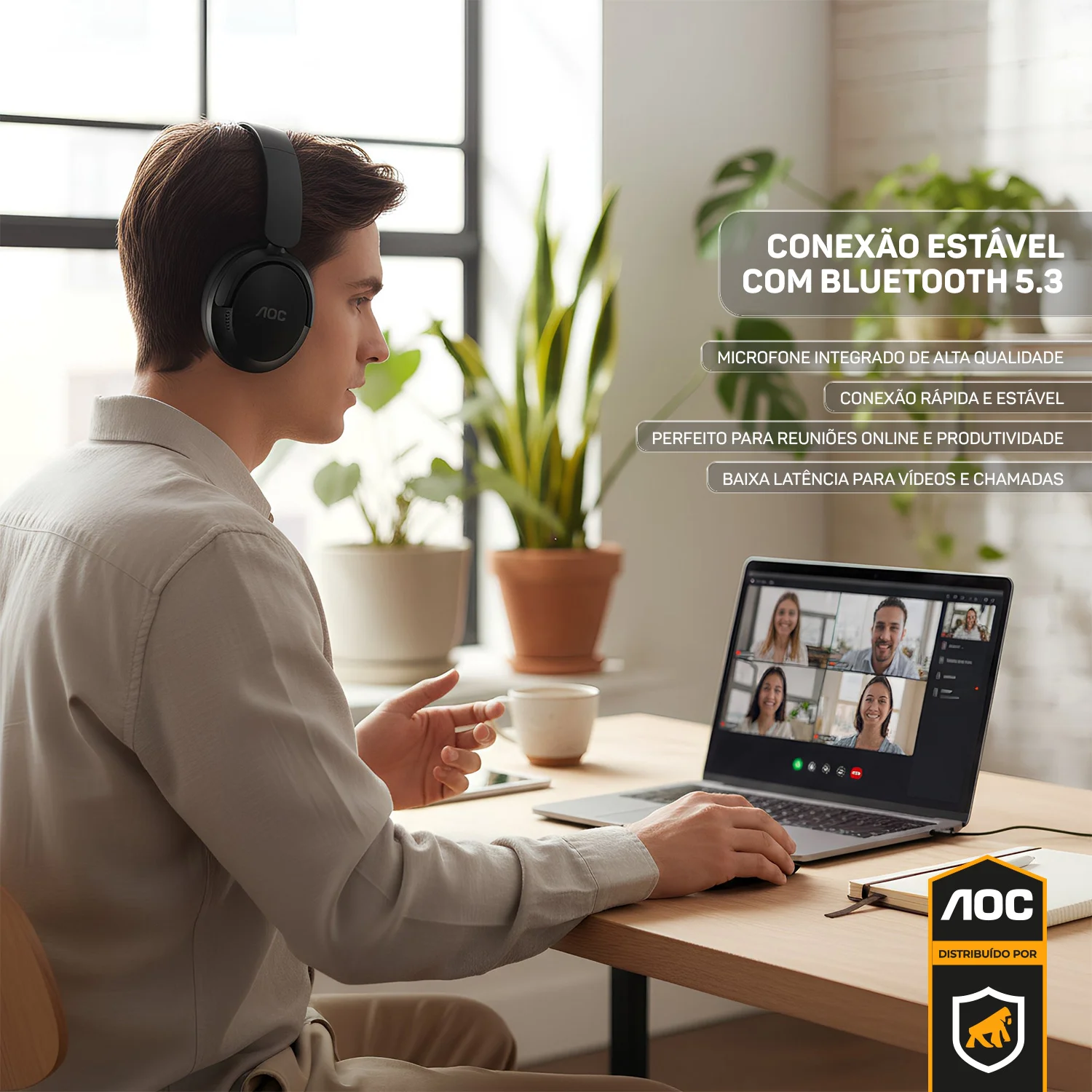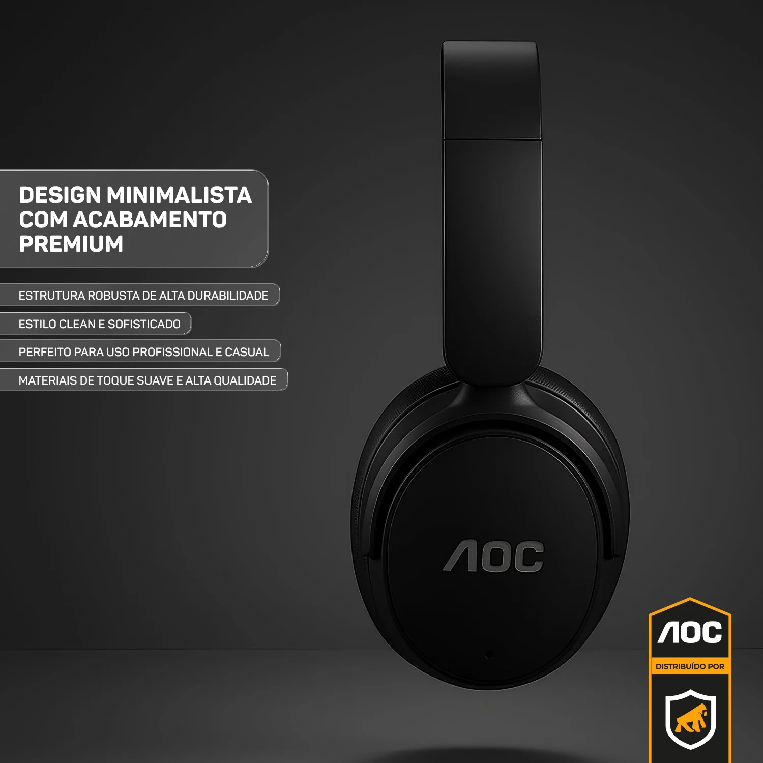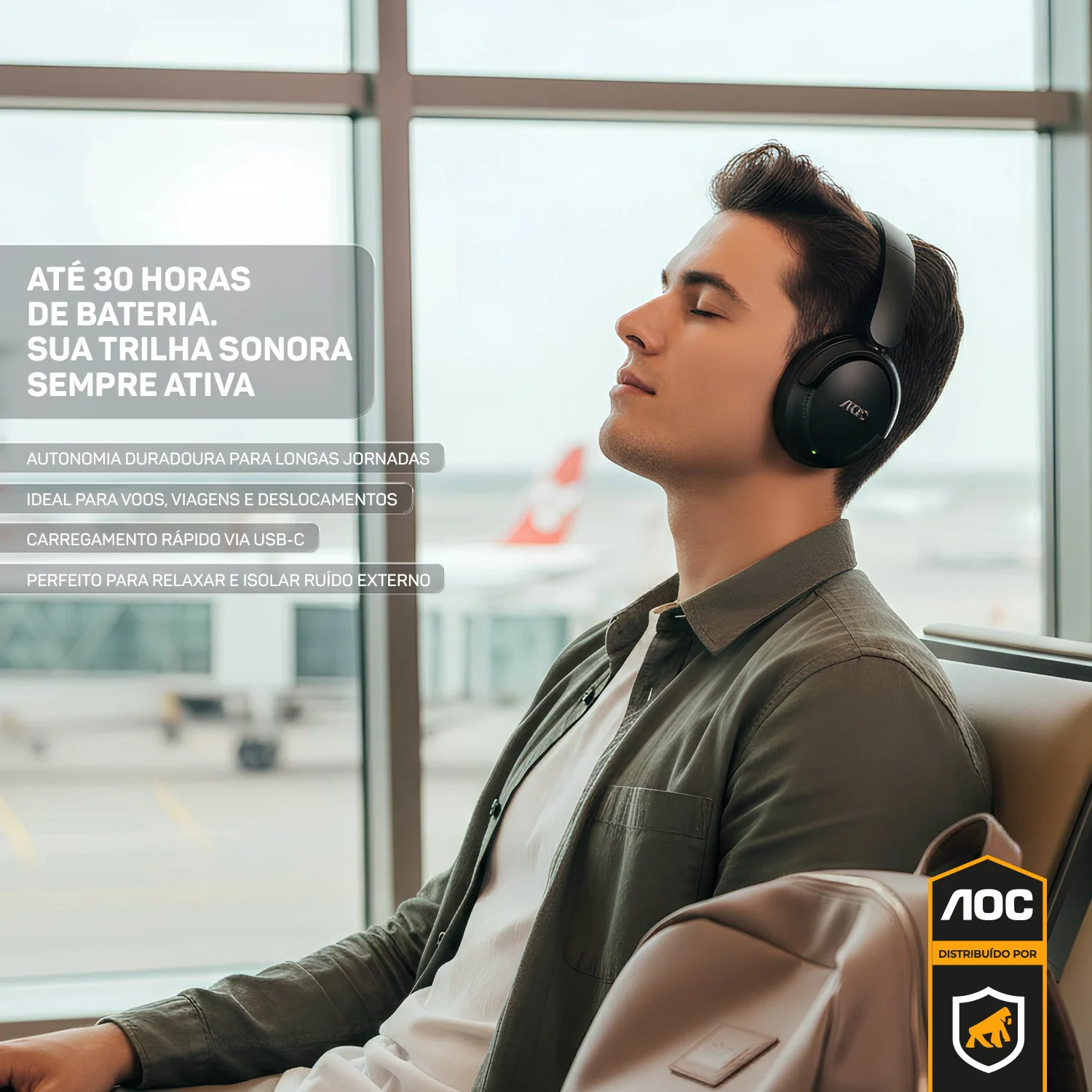 _descricao_ O Headphone Bluetooth Wireless da AOC foi desenvolvido para quem busca qualidade sonora, conforto e praticidade em um só produto. Seu design moderno com hastes acolchoadas e conchas ergonômicas garante um encaixe perfeito, ideal para longas horas de uso no trabalho, estudos, jogos ou momentos de lazer. Com Bluetooth 5.3, você terá conexão estável e sem atrasos em até 10 metros de distância, proporcionando liberdade de movimento para o seu dia a dia. Além disso, a bateria de longa duração garante até 30 horas de reprodução contínua, com apenas 2 horas de carregamento via cabo USB-C. O headphone conta ainda com microfone integrado para chamadas com clareza e praticidade, além de cancelamento ativo de ruído (ANC), que reduz os sons externos para uma experiência imersiva, seja ouvindo música ou assistindo a filmes. Compacto e dobrável, é fácil de transportar e guardar, tornando-se um aliado indispensável para quem precisa de versatilidade sem abrir mão da performance.