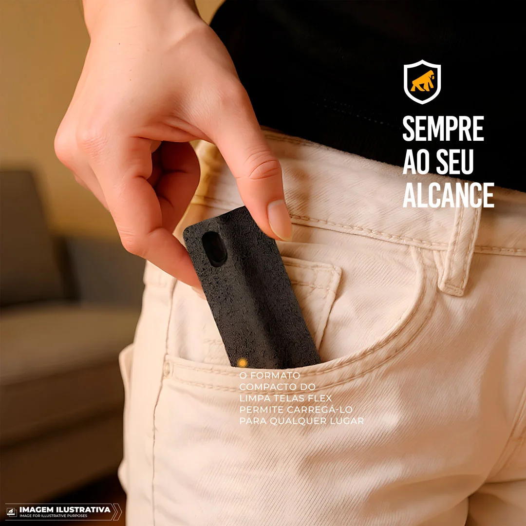 _descricao_ O Limpa Telas Flex Gshield é um acessório prático, compacto e reutilizável, desenvolvido para facilitar a limpeza de telas no dia a dia. Ideal para quem usa smartphone, tablet, notebook ou outros dispositivos com tela, ele permite remover poeira, marcas de dedo e sujeiras leves de forma rápida e segura, sem riscar ou danificar a superfície. Seu design portátil cabe facilmente no bolso, mochila, bolsa ou nécessaire, garantindo que você tenha sempre uma solução de limpeza à mão, em casa, no trabalho ou em viagens. O revestimento externo em microfibra de alta qualidade realiza uma limpeza suave e eficiente, mantendo a tela limpa e com melhor visibilidade. O Limpa Telas Flex conta com um reservatório interno reutilizável, que pode ser reabastecido com o líquido de sua preferência. Isso torna o produto mais sustentável, econômico e adaptável à sua rotina. O acionamento em spray facilita a aplicação controlada, evitando desperdícios. Compacto, funcional e inteligente, o Limpa Telas Flex Gshield é a escolha ideal para quem valoriza praticidade, cuidado com seus dispositivos e organização no dia a dia.
