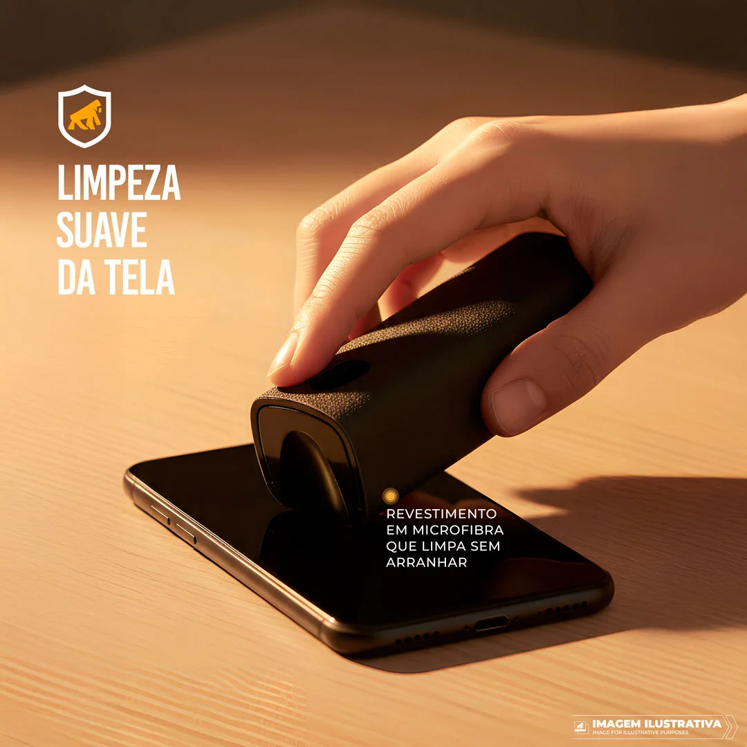 Seu design portátil cabe facilmente no bolso, mochila, bolsa ou nécessaire, garantindo que você tenha sempre uma solução de limpeza à mão, em casa, no trabalho ou em viagens. O revestimento externo em microfibra de alta qualidade realiza uma limpeza suave e eficiente, mantendo a tela limpa e com melhor visibilidade.