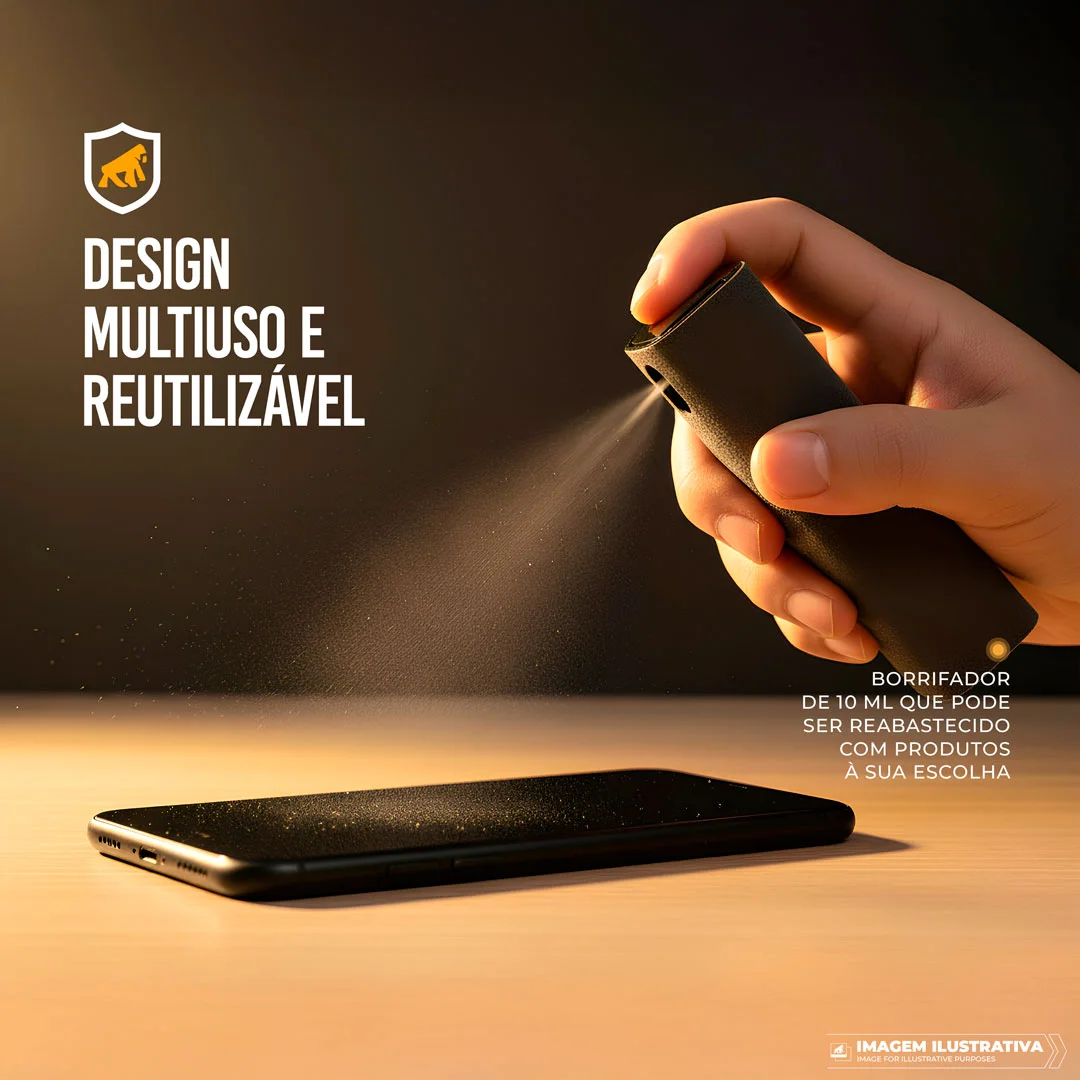 O Limpa Telas Flex conta com um reservatório interno reutilizável, que pode ser reabastecido com o líquido de sua preferência. Isso torna o produto mais sustentável, econômico e adaptável à sua rotina. O acionamento em spray facilita a aplicação controlada, evitando desperdícios.