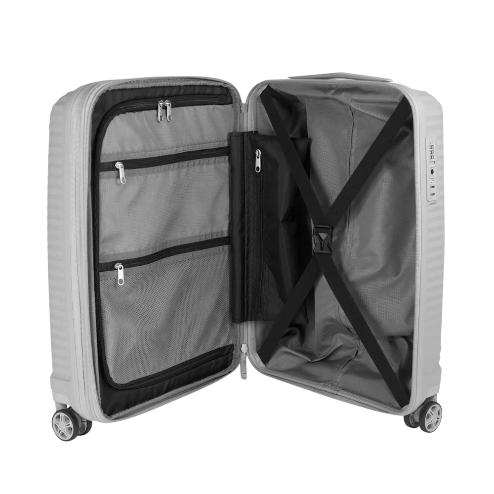 Descubra a coleção VARRO, com design moderno e atemporal é uma linha sofisticada e acessível. Inspirado na forma de uma seta, representa o constante movimento que estamos quando viajamos. Desenvolvida em polipropileno, a beleza do design na área central e traseira com toque brilhante, mistura-se perfeitamente com as ranhuras de flecha texturizadas com acabamento mate. Os logotipos no canto superior e inferior adicionam um ponto único ao design. Esta coleção foi especialmente criada considerando estética, funcionalidade e material de alto nível. Características: fabricado em polipropileno, sistema de 8 rodas multidirecionais, cadeado com combinação e TSA, expansível, alças laterais superior e lateral, sistema de carrinho com tubo duplo e pegador ergonômico. Cintas elásticas cruzadas na parte interna, painel divisor e bolso com zíper.