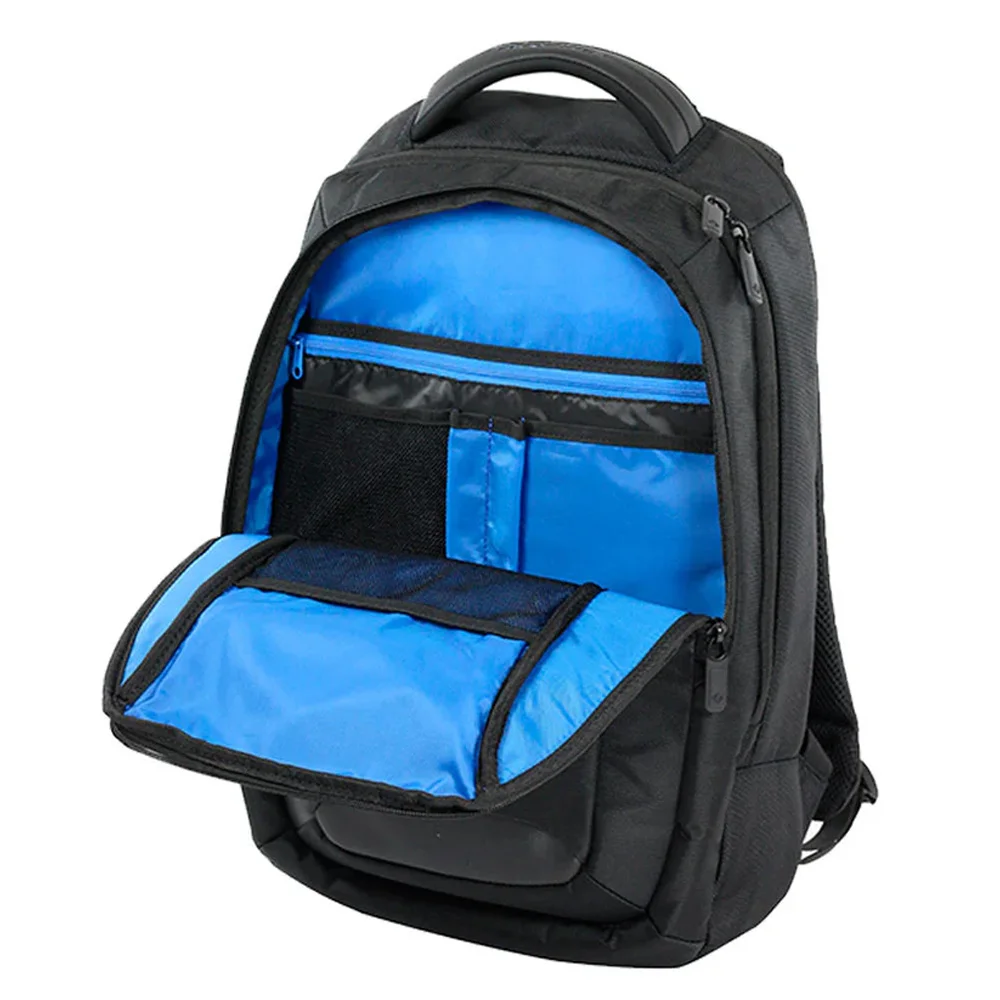 IKONN é uma linha de mochila com sistema de proteção para o laptop e o tablet, inspiradas em um estilo de vida moderno e moderno dos negócios. Possui compartimento principal com espaço acolchoado para laptop de 15.4" e tablet, compartimento secundário com organizador e bolso de malha, bolso frontal com zíper, bolso lateral com zíper, bolso lateral de malha, parte traseira acolchoada, cinto para anexar a bagagem, alça acolchoada com Airmesh.